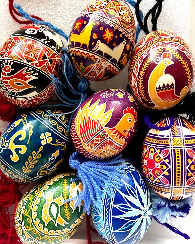 Découvrir l’art de décorer les œufs aux motifs traditionnels ukraniens, utilisant de la cire chaude et des teintures spéciales.